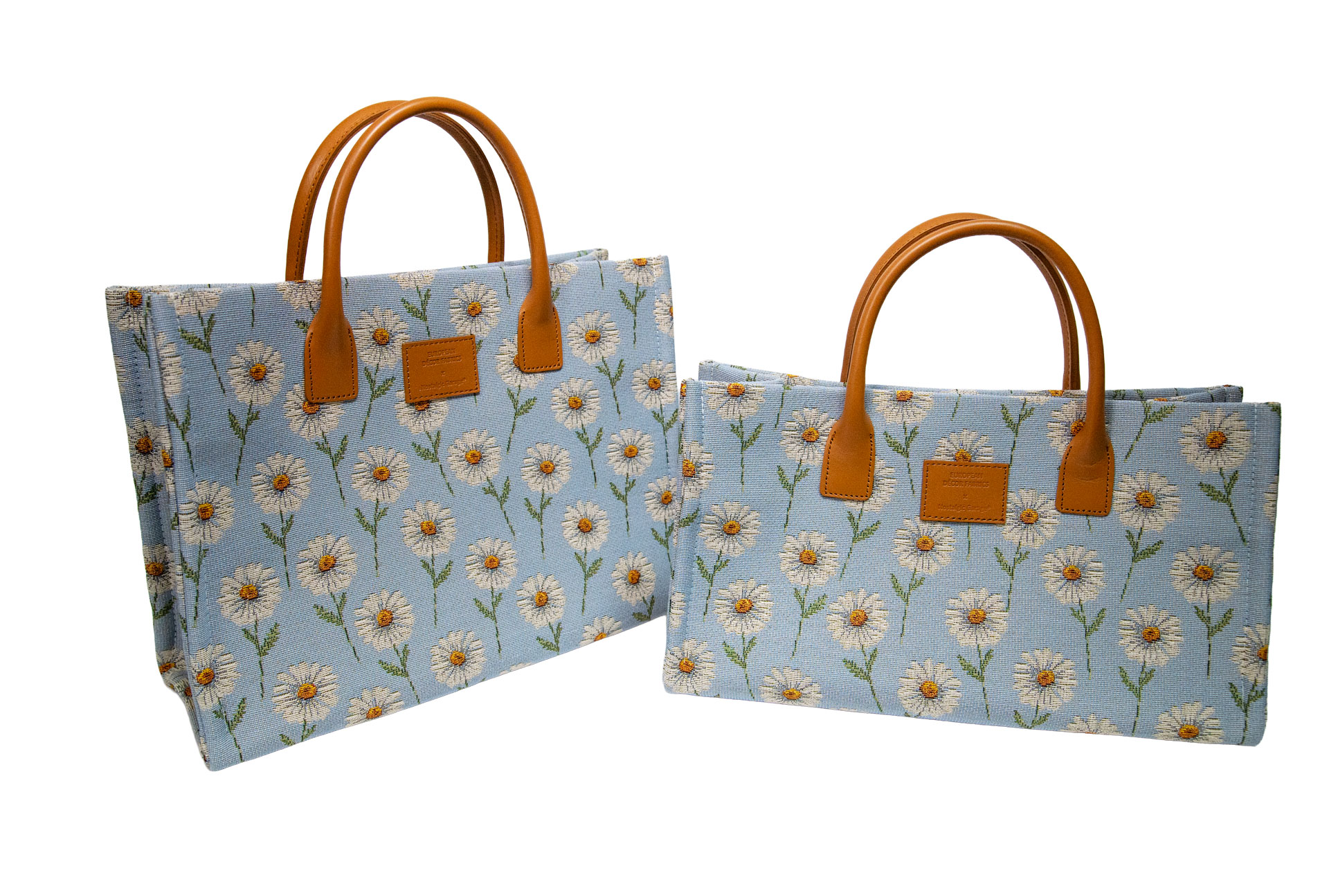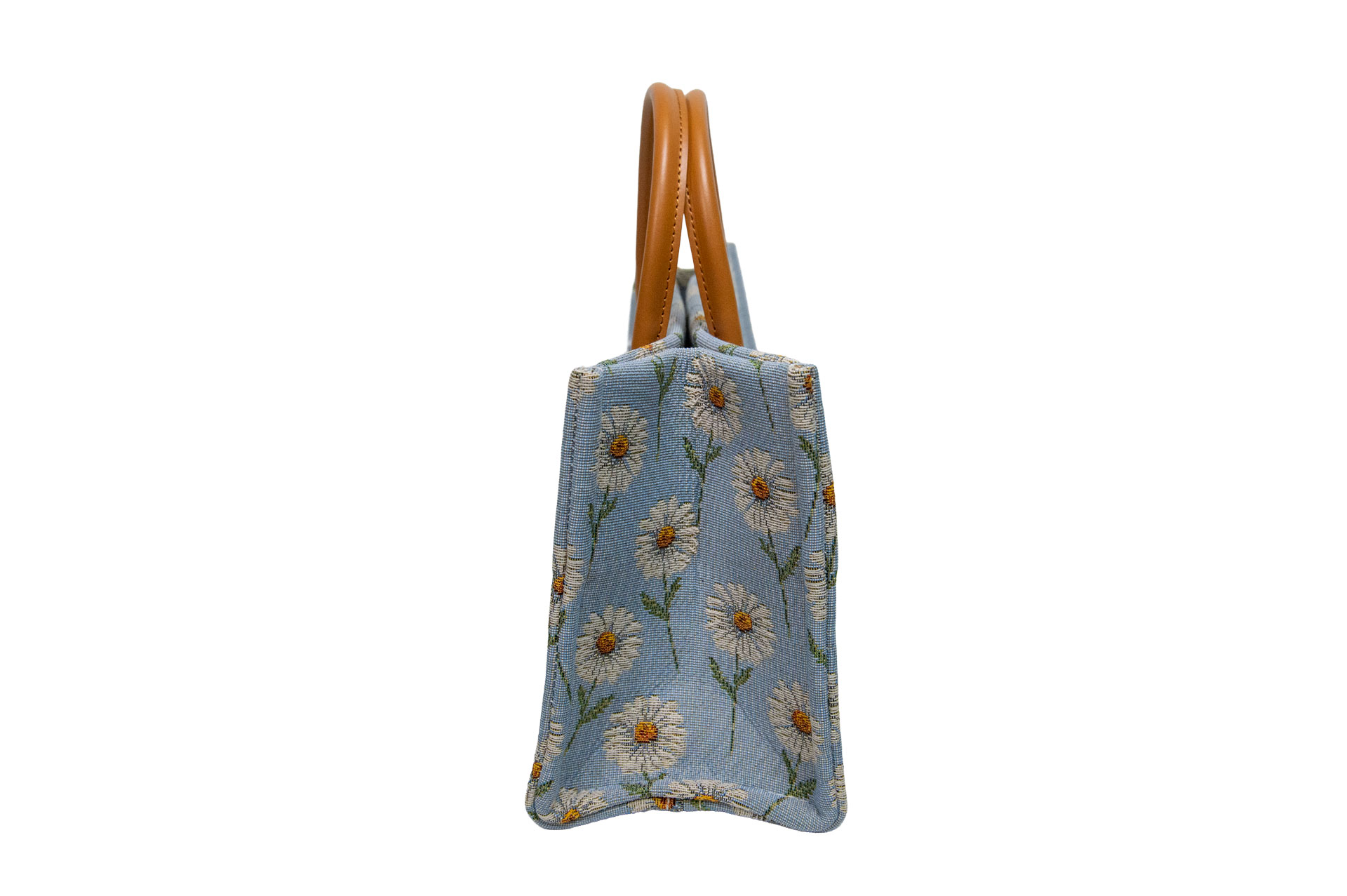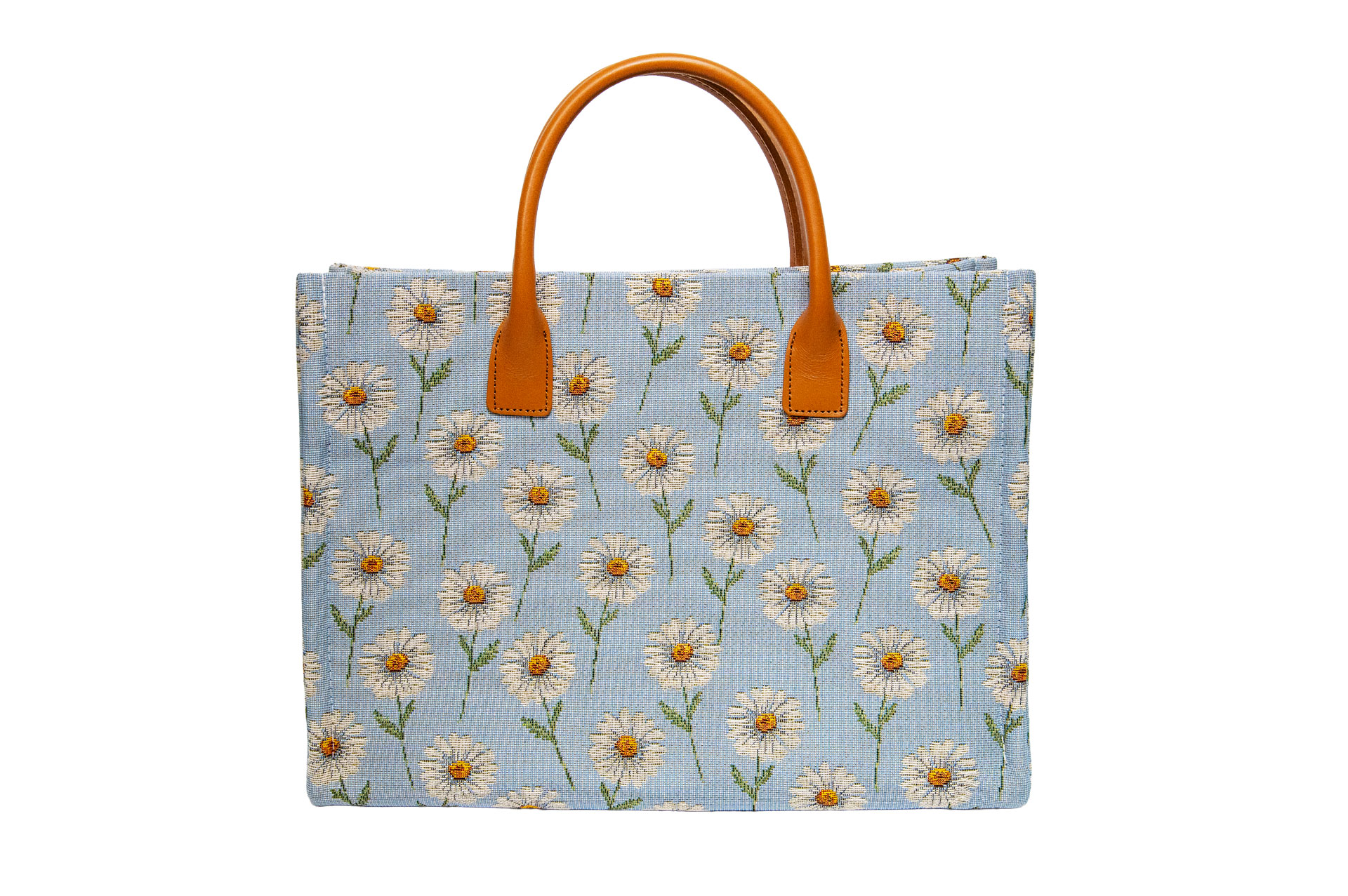 どこか懐かしく、それでいて新鮮。 爽やかなブルーの地色に、ぷっくりと立体的に織り上げられた白いマーガレットが咲き誇る「MARGARETTE」。スペインのインテリアテキスタイルから見つけ出したこの生地は、ゴブラン織りならではの「刺繍のような質感」が、お花一つひとつに豊かな表情を与えています。