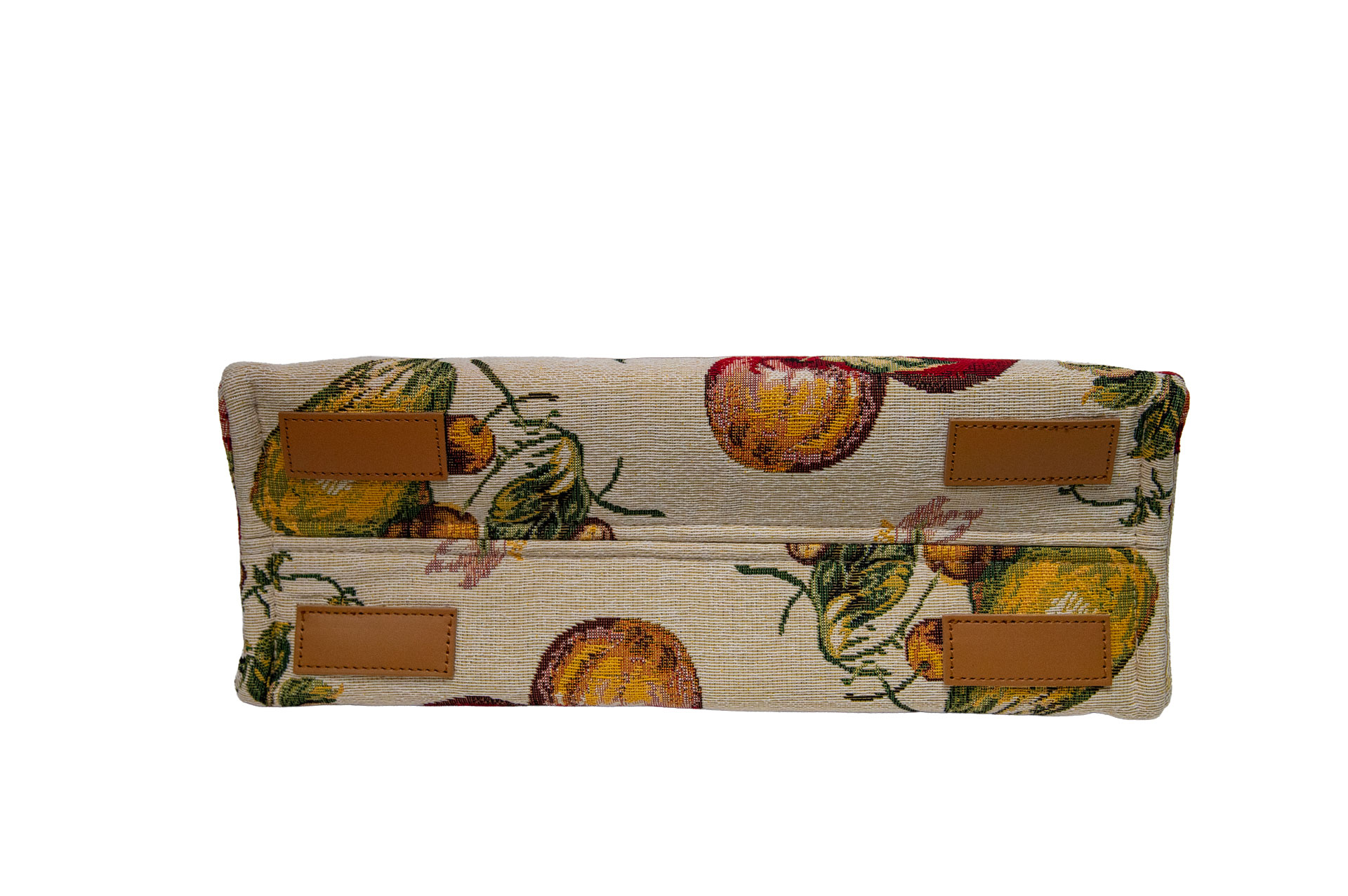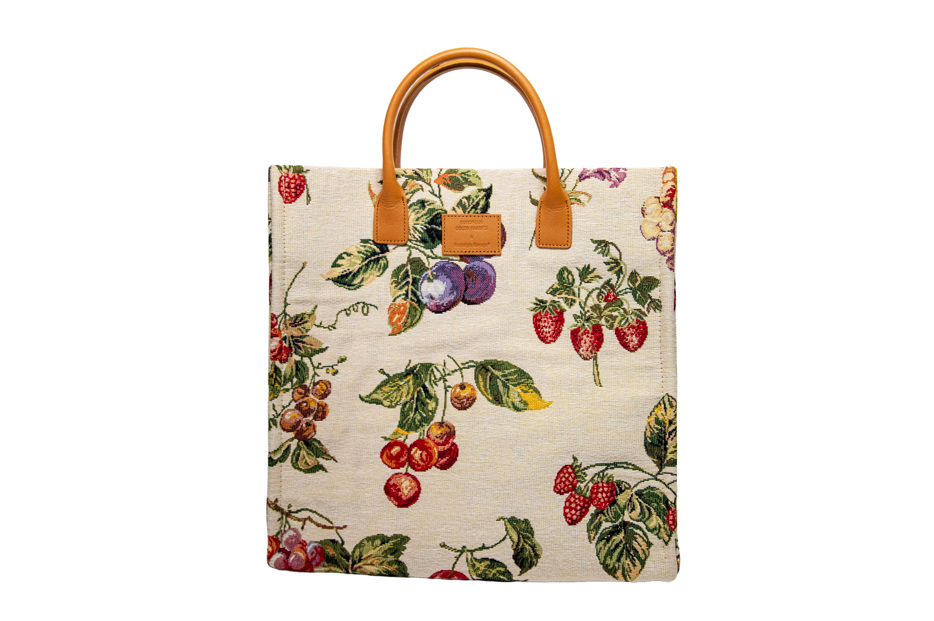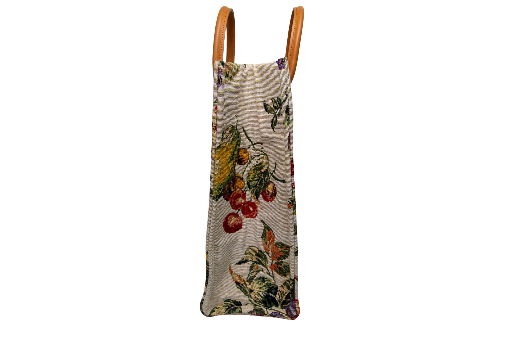 まるでヨーロッパの朝市(マルシェ)に並ぶフレッシュな果実。 プラムやベリー、チェリーといった瑞々しいモチーフを、スペインの希少な生地で仕立てた「FRUITS」。 ゴブラン織りならではの「多色使いの妙」が、果実のグラデーションや葉の葉脈までを生き生きと描き出し、プリントにはない深い情緒と温もりを醸し出しています。