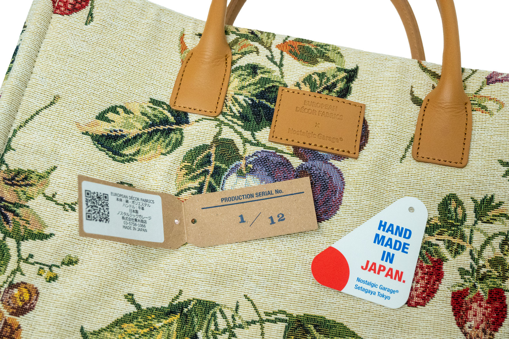 わずか12点。選ばれた人のためのシリアルナンバー: この美しい果実柄を楽しめるのは、世界でわずか12名様のみ。タグに刻印された「1/12」という数字が、ノスタルジックガレージの矜持と、手にする方の特別な存在感を証明します。