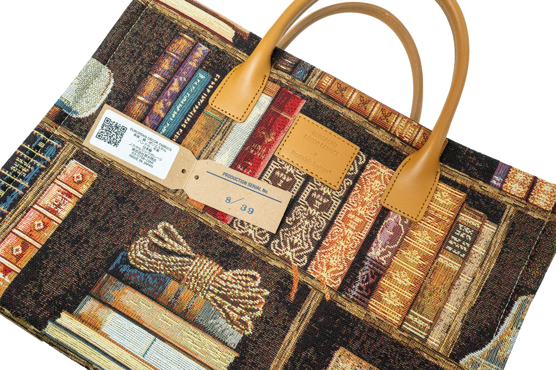 スペイン製のゴブラン生地を使用し、本の厚みや古書の質感を多色使いの糸で克明に再現。単なる「本棚の柄」に留まらない、インテリアファブリックならではの重厚さと立体感が、持つ人のスタイルに唯一無二の深みを与えます。