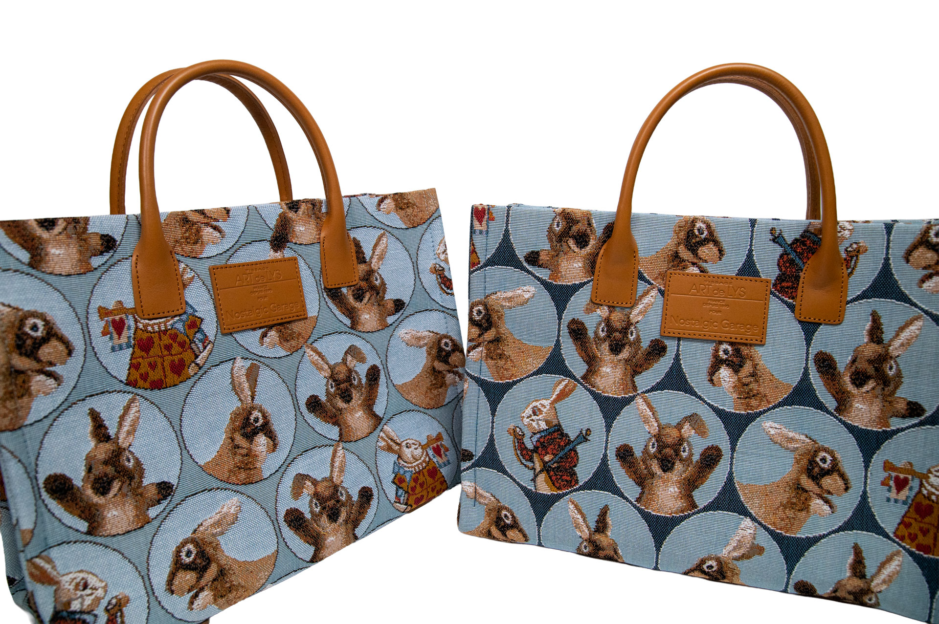伝統が紡ぐ、最高級の質感: 125年以上の歴史を誇るART de LYSの織機で織り上げられた生地は、綿・レーヨン・ポリエステルの混紡による、しっとりと上品な光沢が特徴。ミケーレのシルエットからアリスのうさぎの細かな表情まで、織りだけで見事に描き出されています。