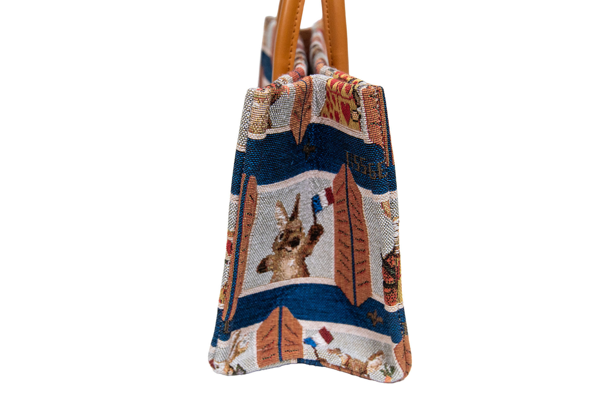 このバッグの主役は、代表自らが命名したオリジナルキャラクターのうさぎ、「MICHELLE(ミケーレ)」。イタリア語の響きを持つこの愛らしいキャラクター(商標登録出願中)が、フランスを象徴するフラッグ(旗)模様と共に軽やかに描かれています。