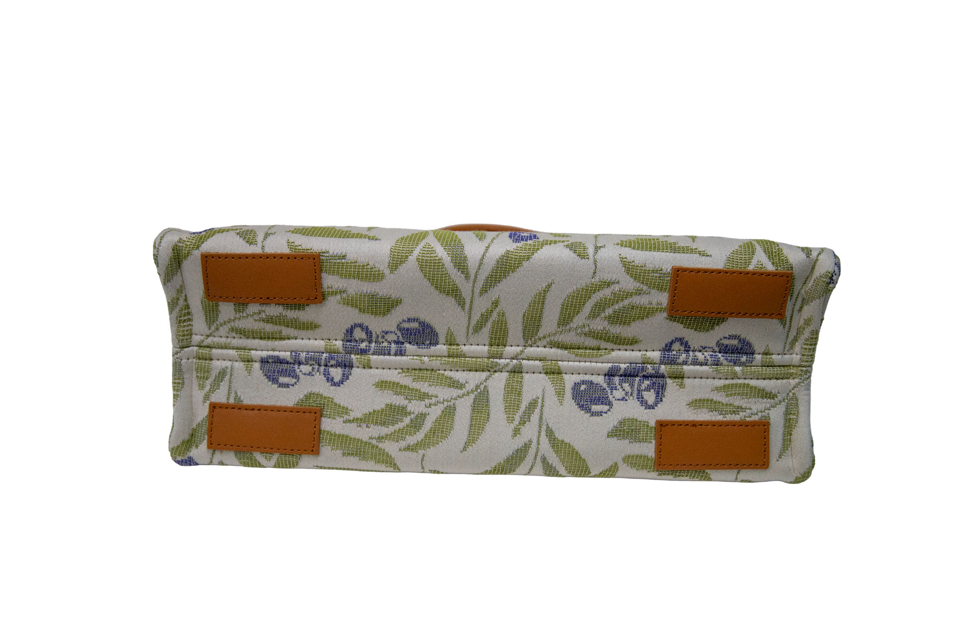 職人技が光る「MADE IN JAPAN」: イタリアから届いた極上のジャガード生地を、日本の熟練職人が実用的なトートバッグへと仕立てました。手馴染みの良いキャメルカラーの本革ハンドルと、堅牢な縫製が、長く愛用できる信頼を約束します。