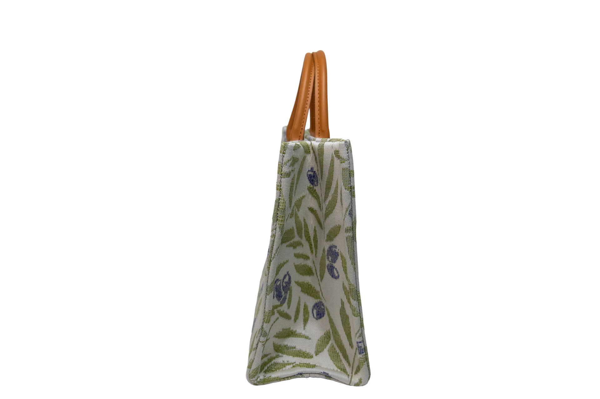 ノートPCや書類も余裕を持って収納できる、スマートな縦長モデル。ボタニカルな柄の魅力を最大限に楽しめる、存在感抜群の一足です。