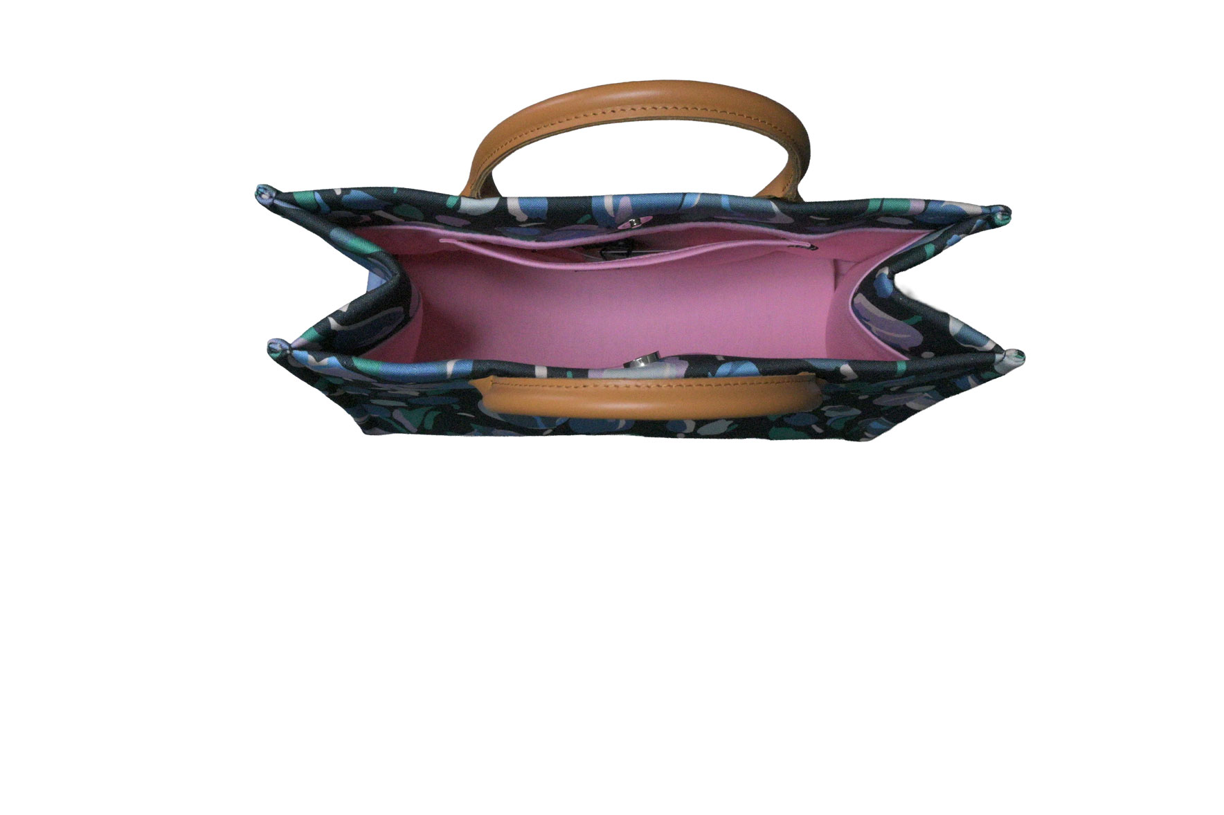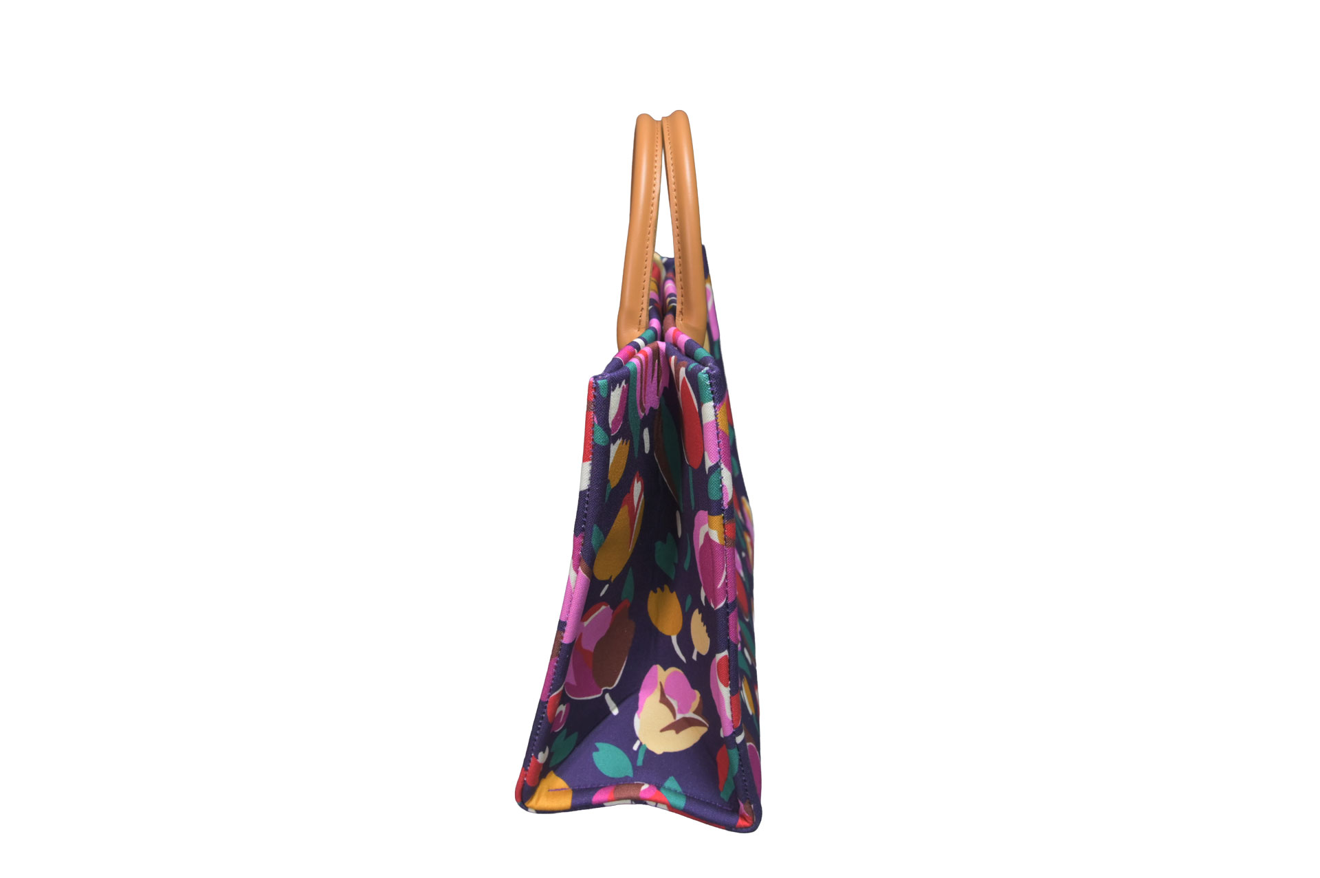 ハンドルにはナチュラルな色味の牛革を合わせ、カラフルなバッグに上品な統一感をプラス。B4サイズまで余裕を持って収まるMEDIUMサイズは、その存在感自体がコーディネートの主役になります。