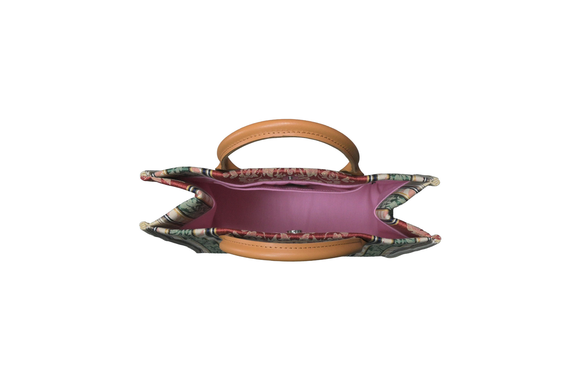 使用されているのは、1960年代〜70年代のイタリア製デッドストック生地。かつては単色の絹織物が主流だったダマスク織に、1950年代以降、耐久性に優れた合成繊維をブレンドする技術が加わったことで、現代に続く多色使いの表情豊かなテキスタイルが誕生しました。