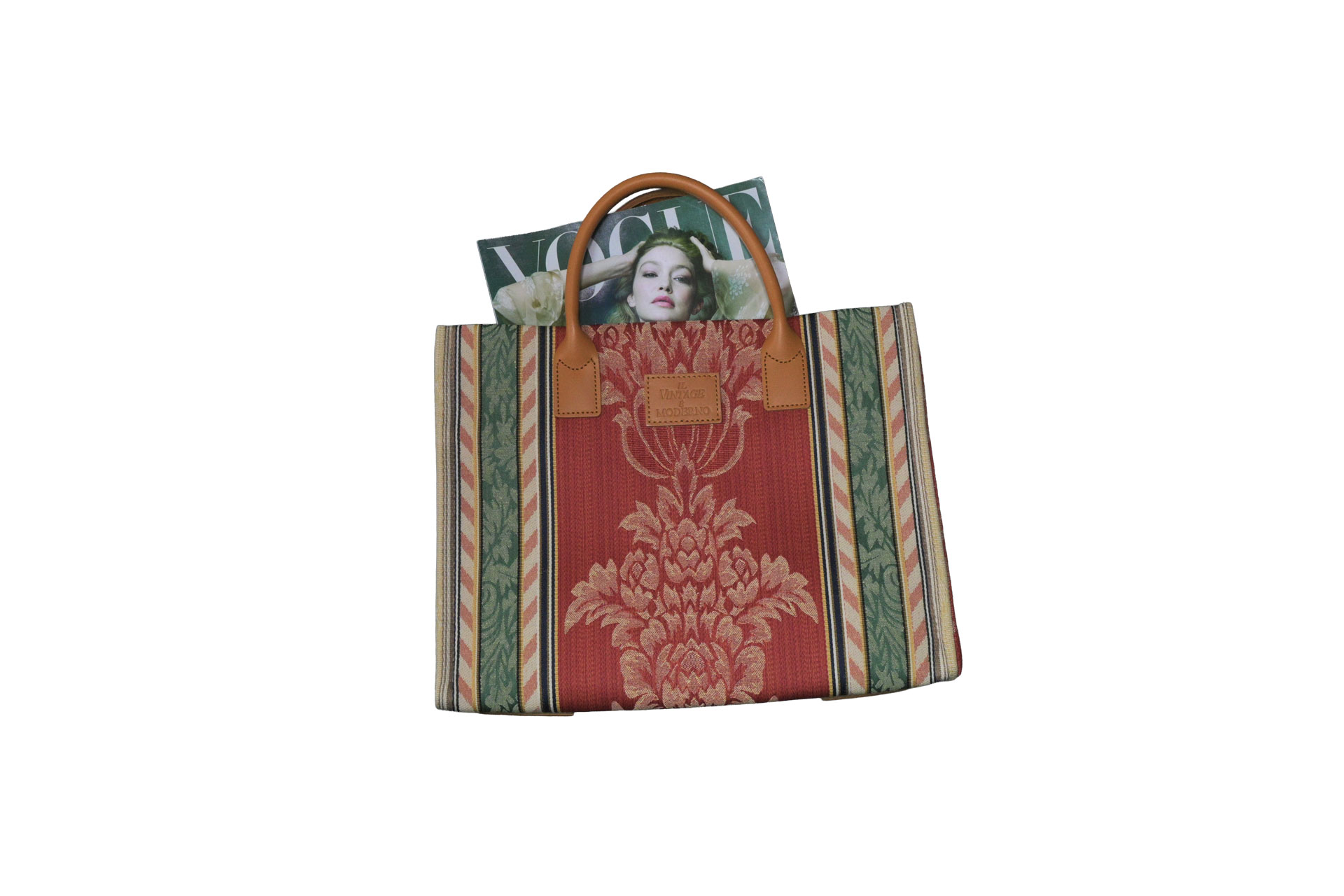 燃えるようなROSSO(赤)の地色に、浮き上がるように織り込まれたCREAMA(クリーム)の紋様。さらに両サイドを飾るグリーンのラインが、クラシックな装いにモダンなリズムを刻みます。イタリア各地のコレクターの協力を得て奇跡的に製品化された、歴史の重みと現代の感性が同居する逸品です。