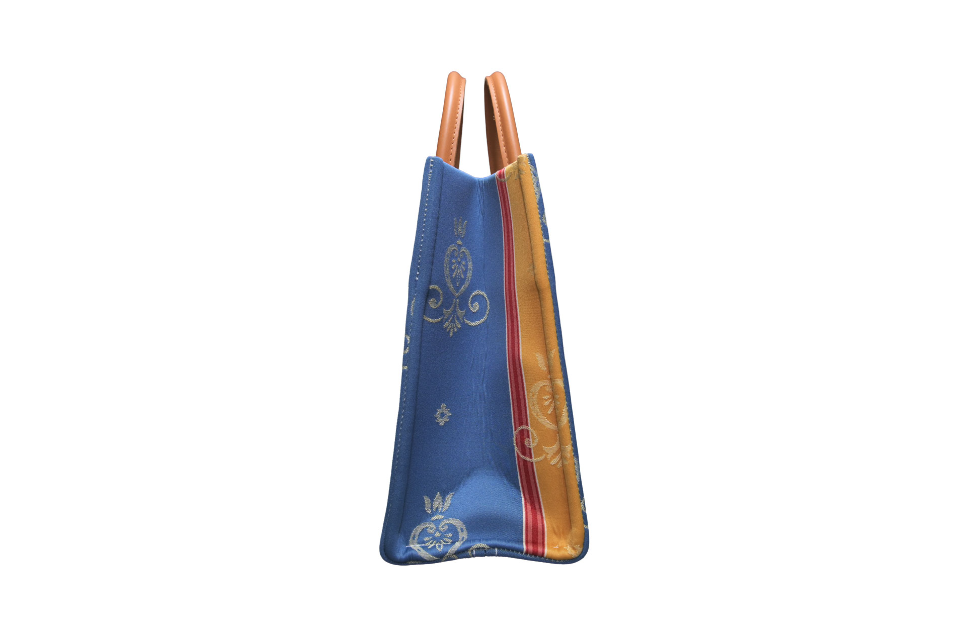 9世紀のダマスカスに起源を持つ「ダマスク織」が、1970年代のイタリアで現代的な解釈を加えられたら——。本製品は、そんな時代背景を象徴するようなイタリア製デッドストック生地を使用しています。
