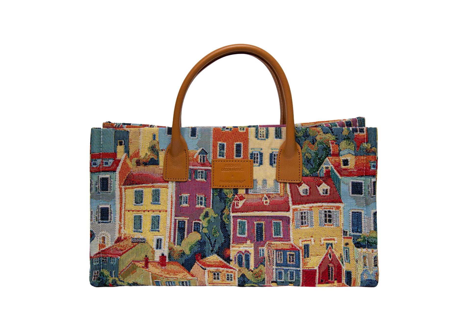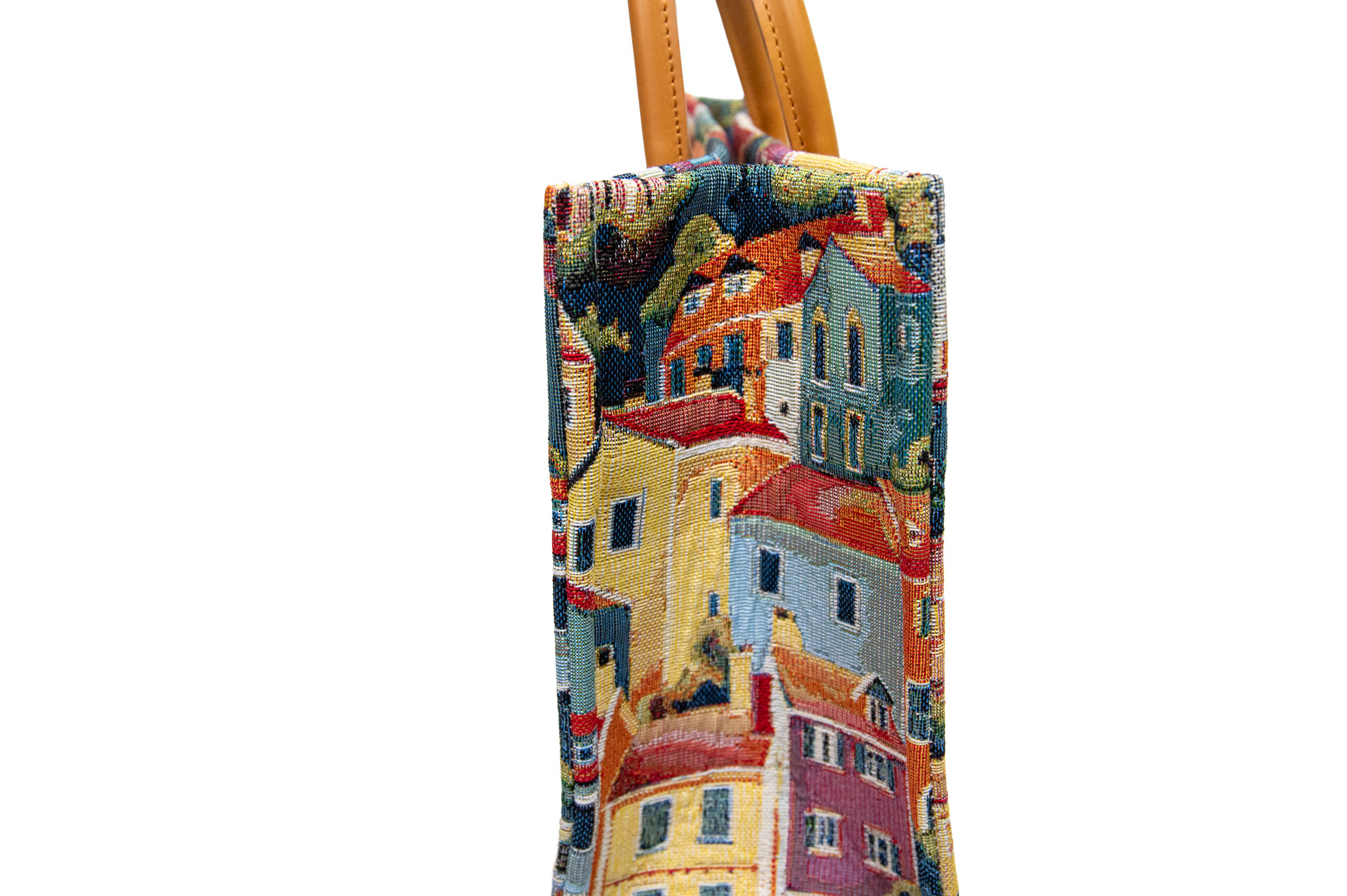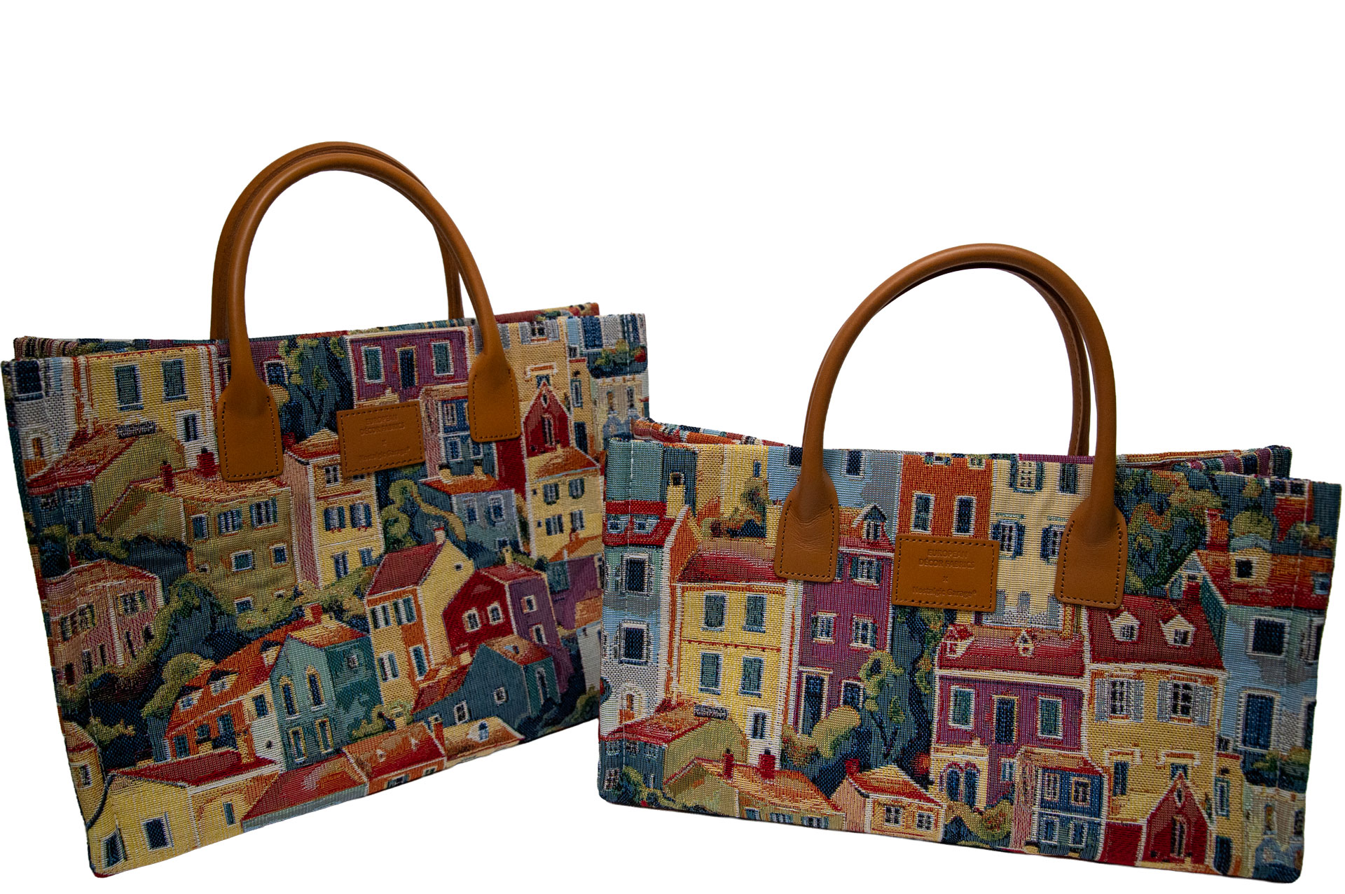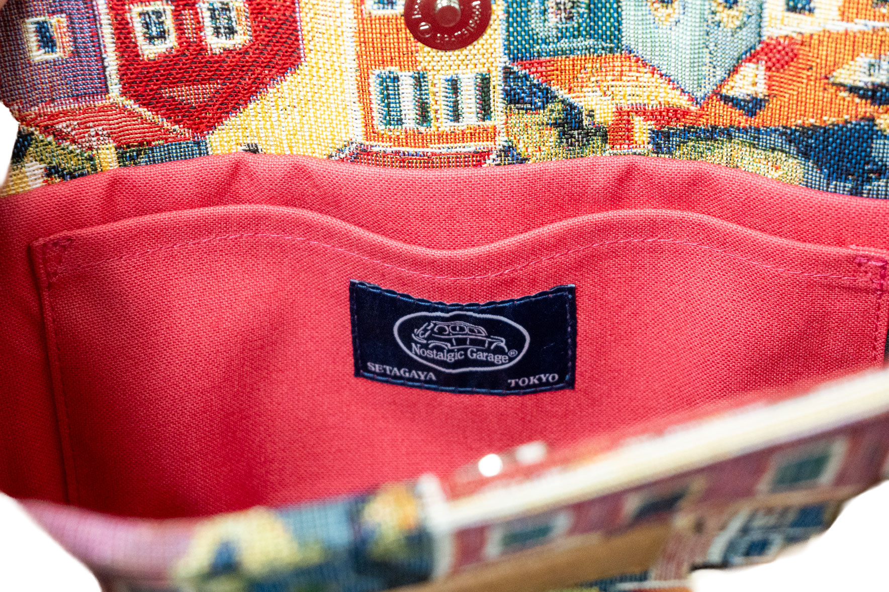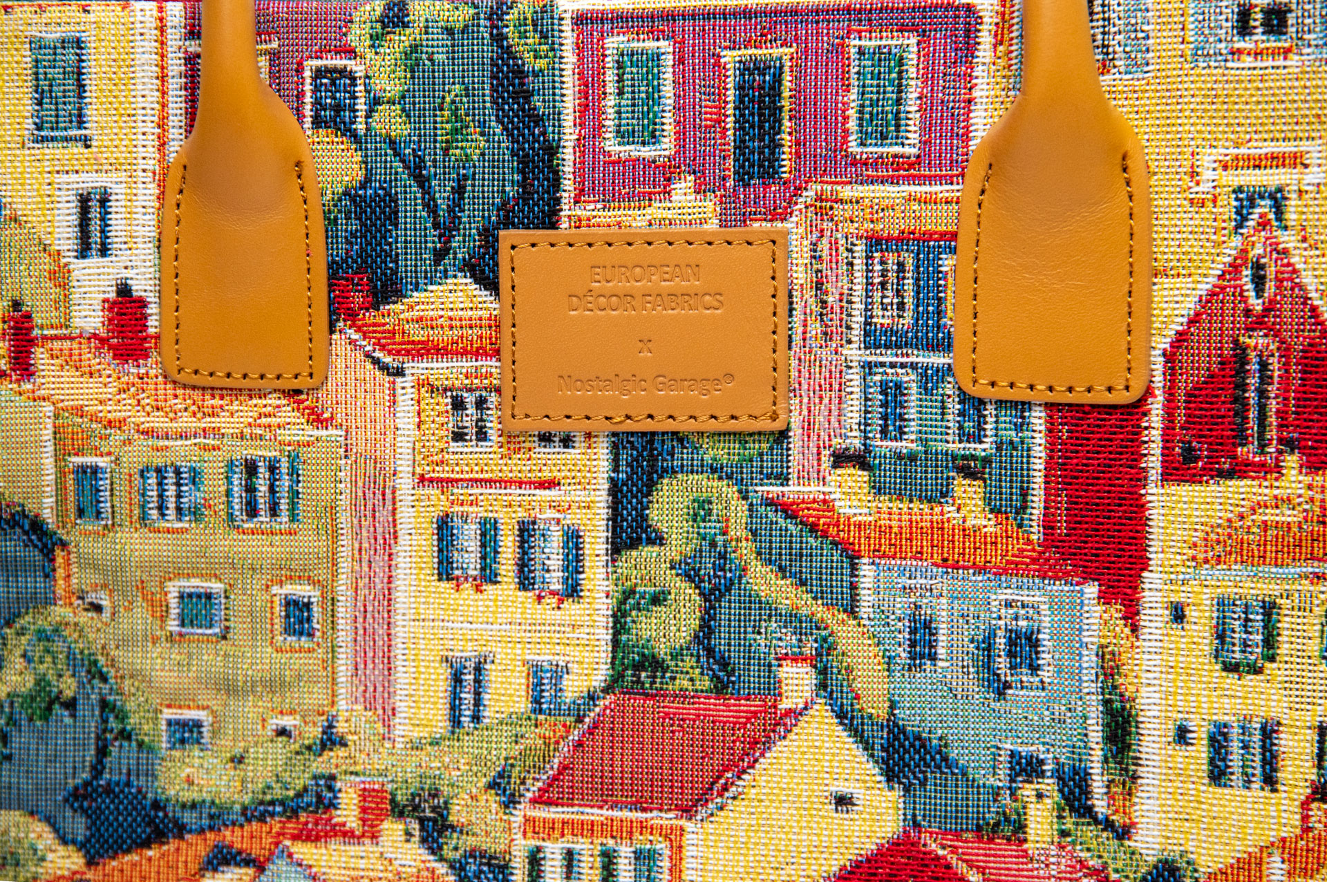 南欧の陽光を浴びたような、鮮やかで温かみのある街並みをジャガード織りで表現した「CASA PASTEL(カーサ・パステル)」。 ヨーロッパのファブリックを贅沢に使用したこのバッグは、手に取るだけで、まだ見ぬ異国の路地裏を旅しているような高揚感を与えてくれます。