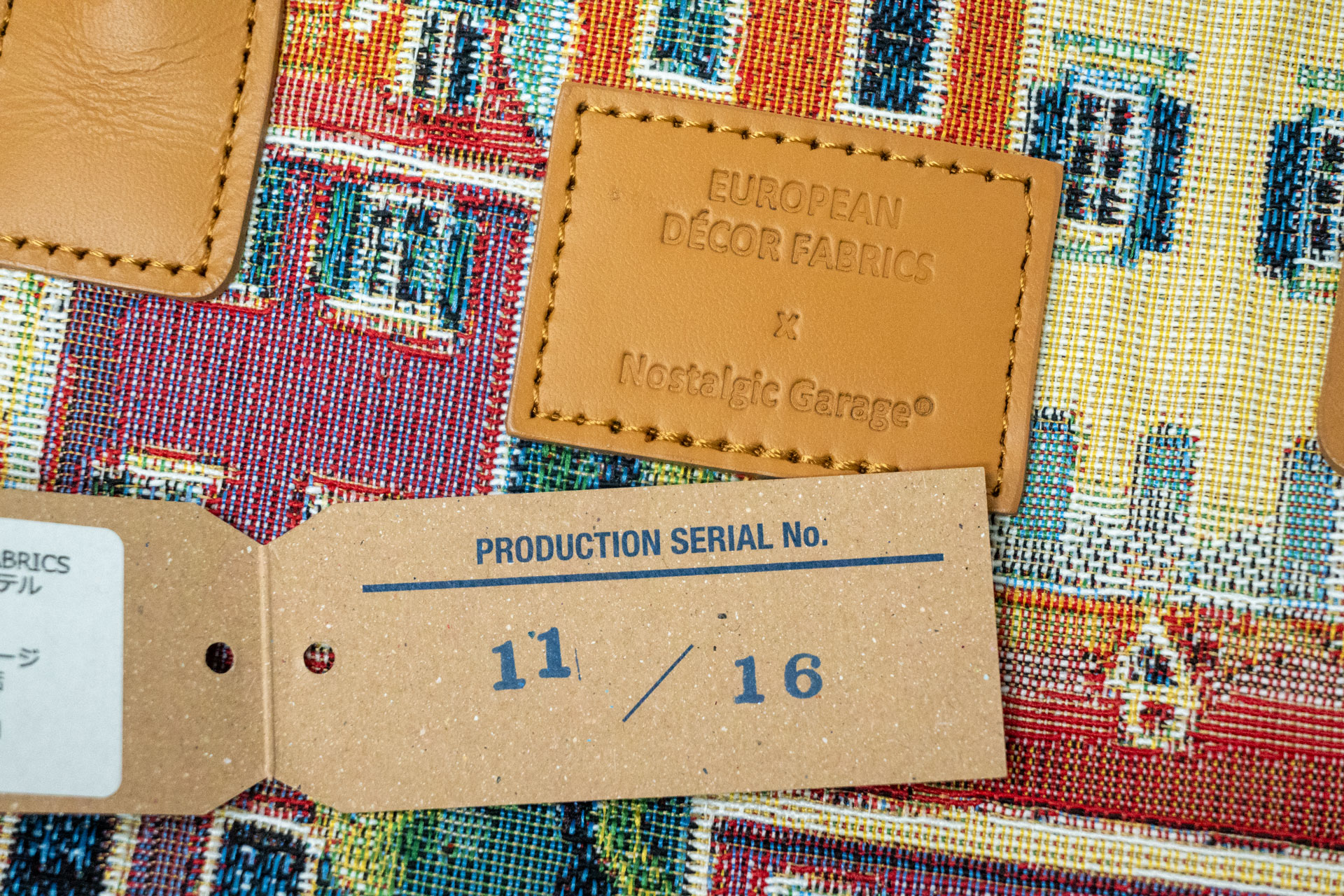 一見すると絵画のような緻密なテキスタイルですが、しっかりとした厚みと凹凸感のある織り地が、ノスタルジックガレージらしい重厚さとタフさを演出。ハンドルには上質なカウレザーを合わせ、大人のカジュアルスタイルをクラスアップさせる一品に仕上げました。