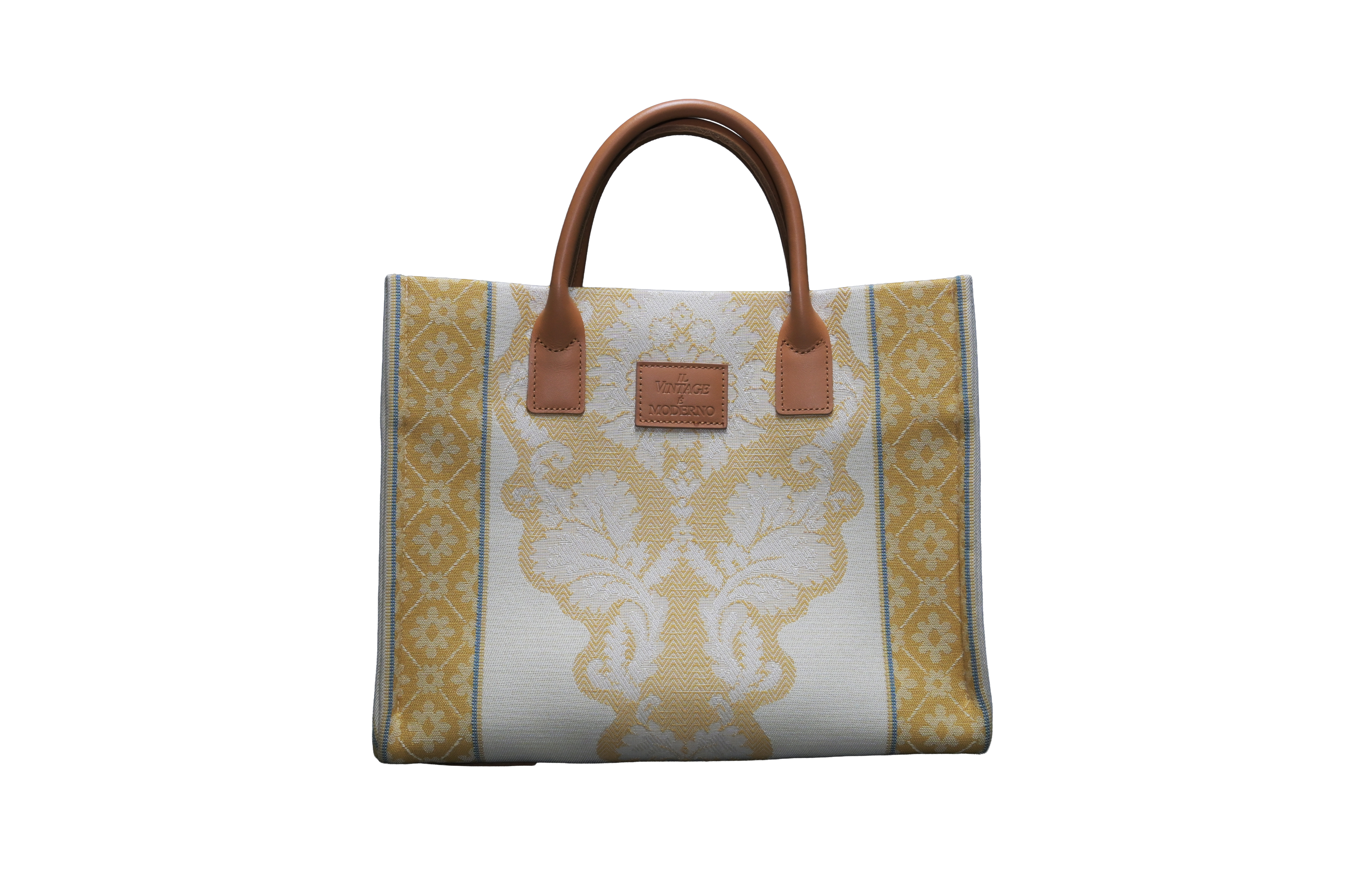 イタリア各地のコレクターの手により、当時のままの鮮やかさで大切に保管されていたこの生地。半世紀近い時を経て、日本の職人の手により現代を闊歩するトートバッグへと生まれ変わりました。