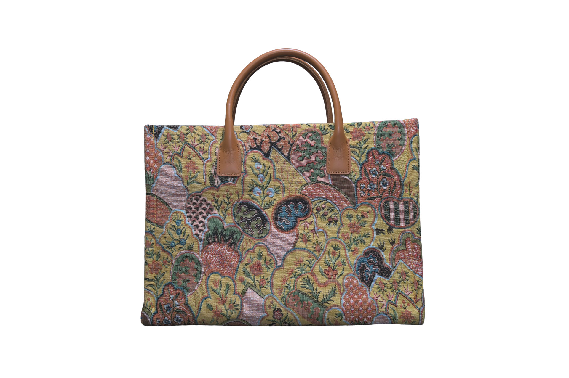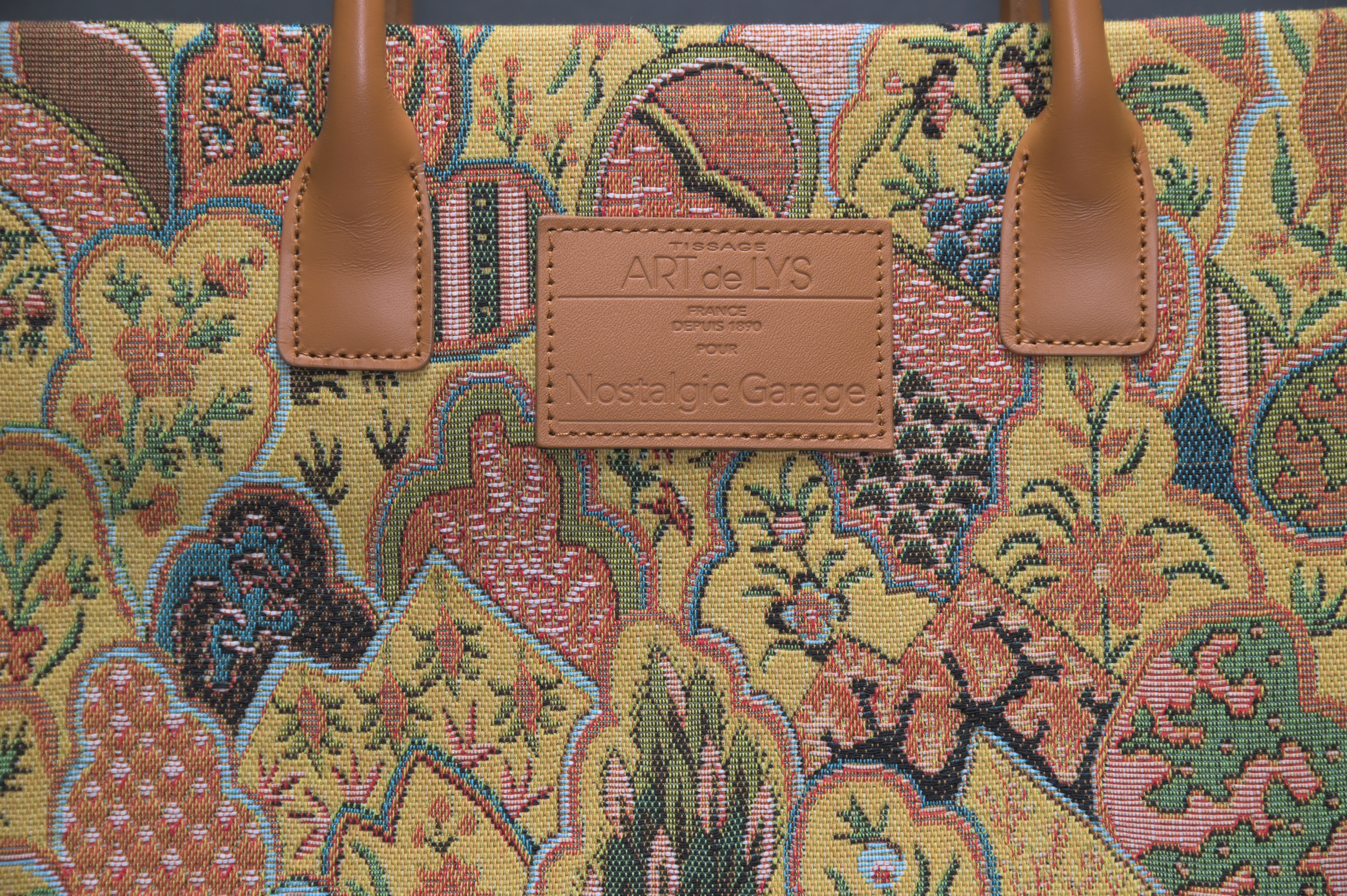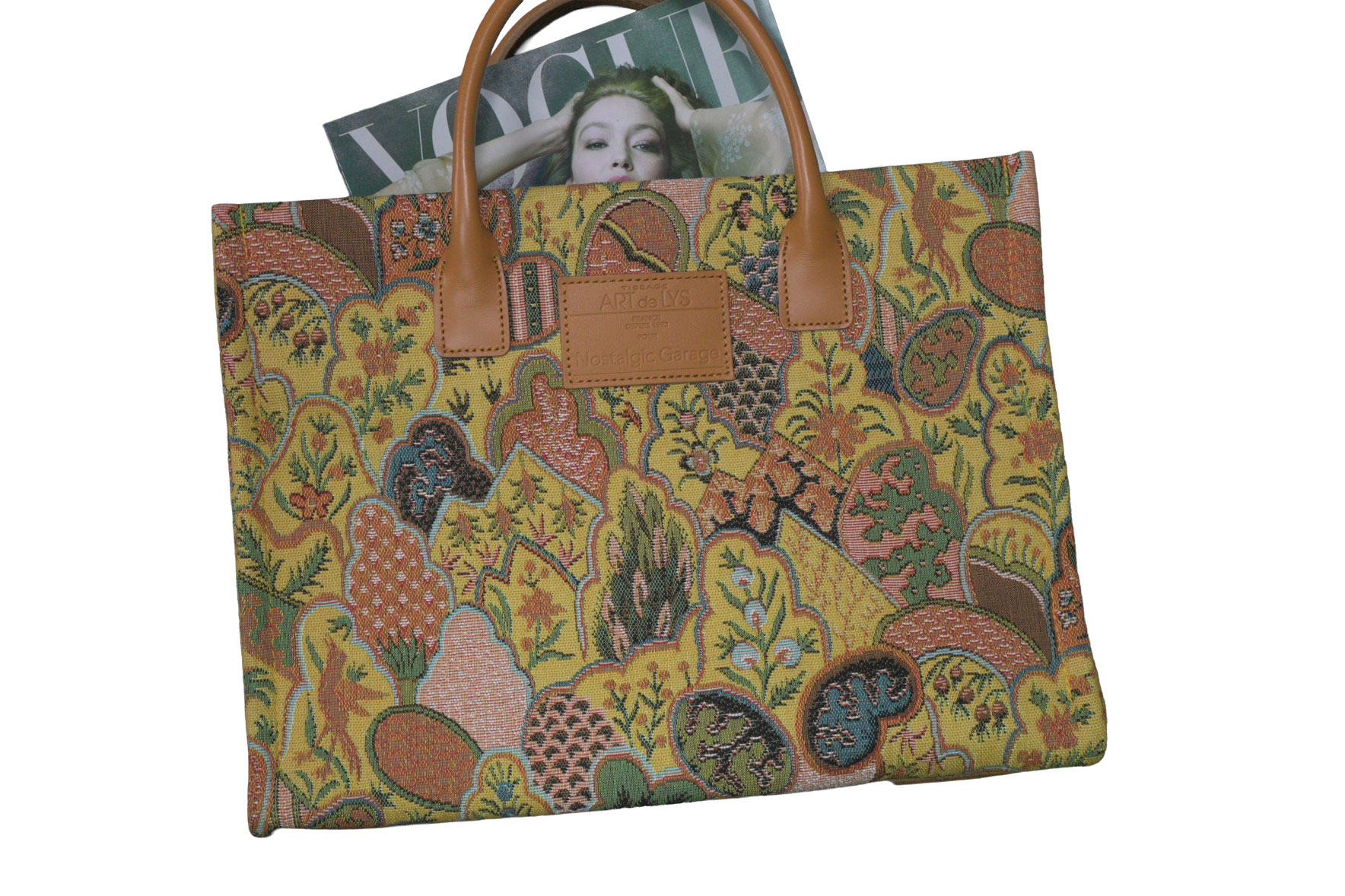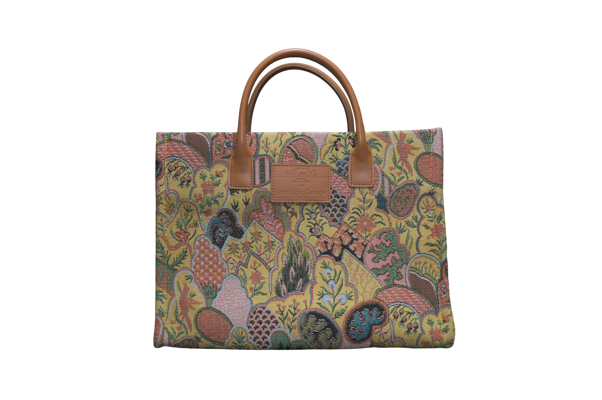 フランスの名門テキスタイルメーカー「ART de LYS(アール・ド・リス)」社製の、重厚で美しいジャガード生地を贅沢に使用したトートバッグです。